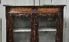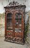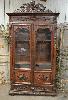 | Vitrine bibliothèque en chêne et loupe de noyer de style bressan avec 2 portes