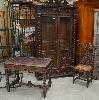 | Ensemble de bureau de style Henri II en chêne à restaurer composé d'une bibliothèque, d'un bureau et d'une chaise